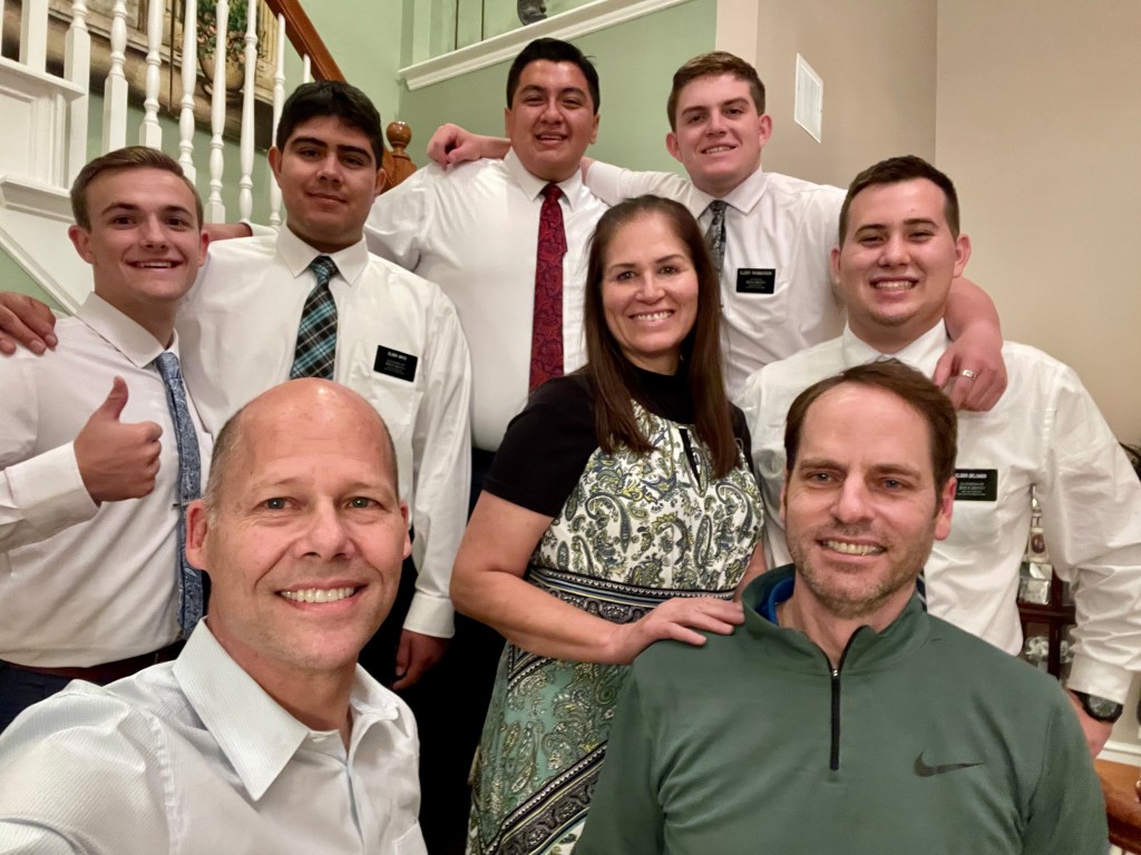 Funny Story: I was originally scheduled to train at the Mexico City MTC, but was switched to the Provo, Utah MTC. 5 Missionaries from my Arizona Scottsdale District connected into Dallas from the Mexico City MTC on their way to Arizona. They missed their connection in Dallas and one of the senior missionary couples – Elder & Sister Lauritzen arranged the delayed missionaries stay at a relatives house, which happened to be President Moon (brother to Sister Lauritzen) in the Stake Presidency of the Plano Texas Stake. The missionaries stayed overnight at his house and knowing that I was also assigned to the same mission, President Moon invited my parents to come over. President Moon set me apart to begin my missionary service. He’s a great selfie-taker. 😎